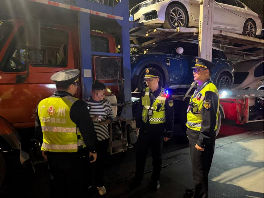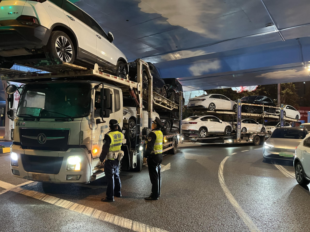 自去年7月以来,按照国家部委统一部署,广东各地交通运输、公安交管部门针对车辆运输车持续开展路面治理行动。为逃避执法打击,一些违法违规车辆选择在深夜或凌晨出动。近期,通过系统梳理摸排,全省各地交通运输、公安交管部门在重点时段加派执法力量,严查各类违法违规行为。
